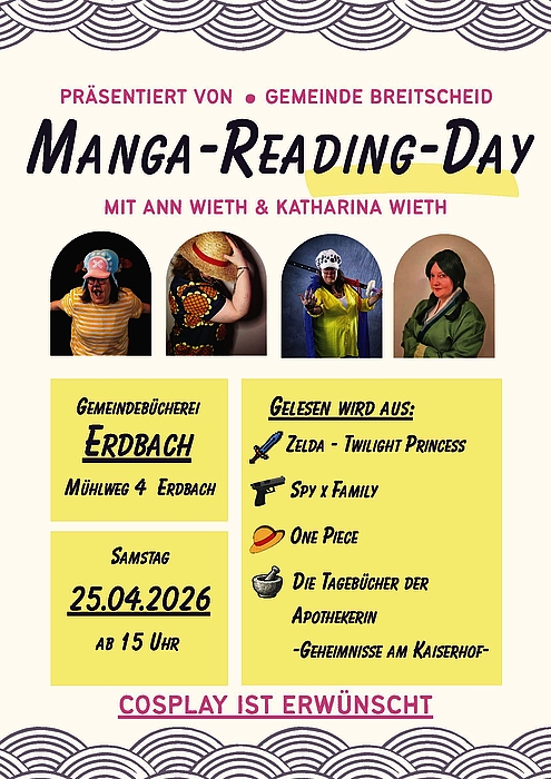 25.4.2026 ab 15 Uhr den ersten "Manga Reading Day" in der Gemeindebücherei Erdbach.